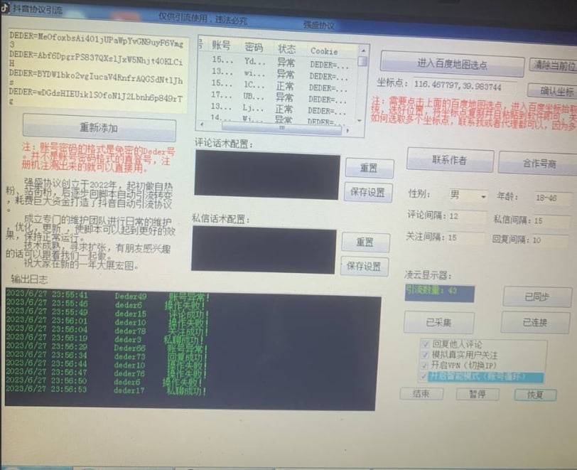 抖音/快手协议号token号ck号批发100个一组,群控挂脚本必备